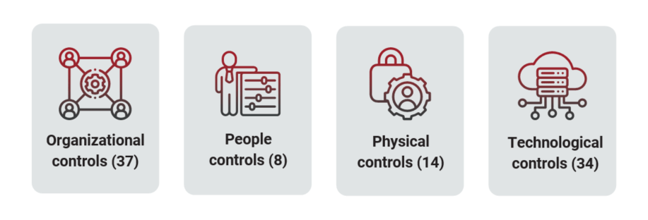 ISO 27001:2022: The updated ISO 27001:2022 standard includes 93 controls, organized into 4 themes: